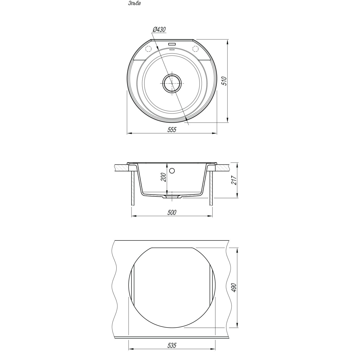 Мойка круглой формы. Угол наклона стенок составляет всего лишь 5 градусов, что сохраняет объем по всей внутренней глубине чаши. Удобная глубокая чаша 200 мм для мытья крупной посуды. Без крыла. Комплектация В комплектацию мойки входит: отводная арматура с выпуском 3 1/2 (D=90) и переливом, набор крепежей, трафарет для вырезания столешницы, технический паспорт, гарантийный талон. Монтаж Тип установки - накладная. Кухонный блок - от 50 см. Устанавливается сверху на столешницу в предварительно подготовленное отверстие. Мойка имеет подготовленные отверстия под смеситель и аксессуары. Отверстия надсверленны с обратной стороны и отмеченные желтым сигнальным кругом с лицевой стороны. Эксплуатация Мойка неприхотлива в эксплуатации, легка в уходе. Для очистки подойдет любое моющее средство. Износостойкая, не царапается. Выдерживает перепады температур в широком диапазоне. Безопасна для пищевых продуктов.