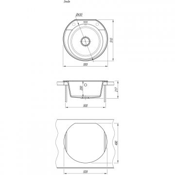 Мойка круглой формы. Угол наклона стенок составляет всего лишь 5 градусов, что сохраняет объем по всей внутренней глубине чаши. Удобная глубокая чаша 200 мм для мытья крупной посуды. Без крыла. Комплектация В комплектацию мойки входит: отводная арматура с выпуском 3 1/2 (D=90) и переливом, набор крепежей, трафарет для вырезания столешницы, технический паспорт, гарантийный талон. Монтаж Тип установки - накладная. Кухонный блок - от 50 см. Устанавливается сверху на столешницу в предварительно подготовленное отверстие. Мойка имеет подготовленные отверстия под смеситель и аксессуары. Отверстия надсверленны с обратной стороны и отмеченные желтым сигнальным кругом с лицевой стороны. Эксплуатация Мойка неприхотлива в эксплуатации, легка в уходе. Для очистки подойдет любое моющее средство. Износостойкая, не царапается. Выдерживает перепады температур в широком диапазоне. Безопасна для пищевых продуктов.